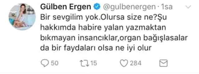 Ünlü şarkıcı, aşk iddialarına sosyal medya hesabı üzerinden yaptığı açıklama ile yanıt verdi ve iddiaları yalanladı. Ergen, “Bir sevgilim yok. Olursa size ne? Şu hakkımda ha bire yalan yazmaktan bıkmayan insancıklar, organ bağışlasalar da bir faydaları olsa ne iyi olur.” diye yazdı.