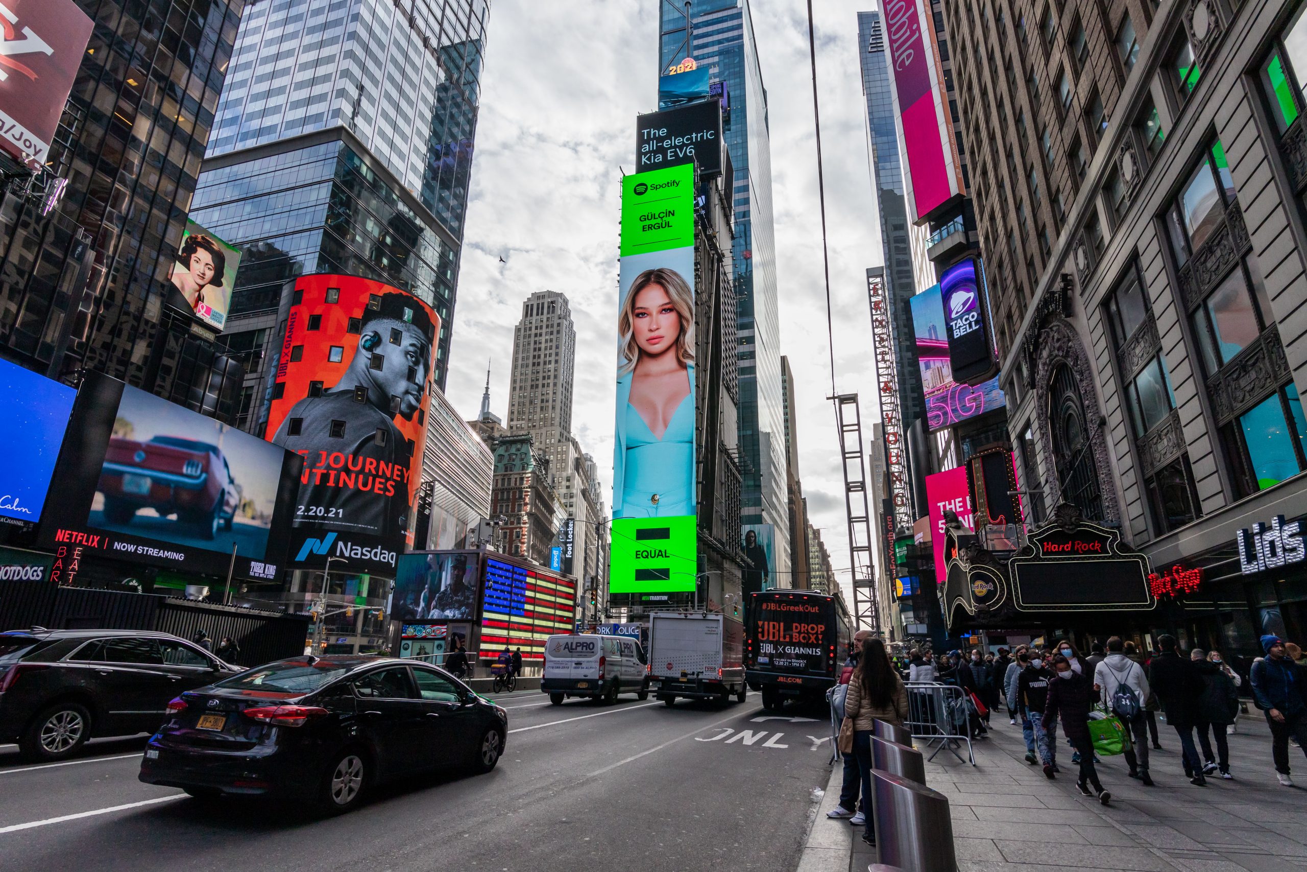 Ünlü şarkıcı Gülçin Ergül, New York Times Meydanı ‘ndaki dev dijital ekranı süsledi. Güzel şarkıcının fotoğrafı, New York’un meşhur caddesinde gün boyu yer aldı. İşte Detayları…