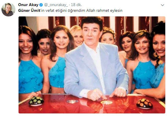 Televizyon ekranlarında bir döneme damga vuran pek çok yerli ve yabancı filmlerin seslendirmesinde sesi ile katkıda bulunan ve Turnike adlı programıyla milyonları ekranlara kitleyen Güner Ümit’in vefat ettiğini resmi hesabından duyuran ses sanatçısı Onur Akay sosyal medyayı bir anda ayağa kalktı. 1995 yılında Turnike adlı programı sunan Güner Ümit canlı yayında Alevilerle ilgili sözlerine gelen tepkiler yüzünden ekranlara veda etmişti. Ümit hakkında son olarak akıllarda kalan bunlardı. Sosyal mecralarda ‘Felaket Tellalı’ lakaplı Onur Akay’ın hesabında bu paylaşımı görenler büyük bir üzüntü duyarken gerçek kısa bir süre sonra ortaya çıktı.