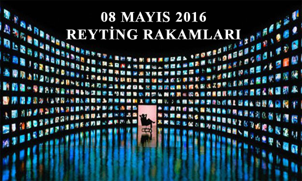 08 Mayıs 2016 Pazar gününe ait ‘ABC1’ reyting sıralamasına göre ilk 20 şöyle: 08 Mayıs Pazar gününe ait ‘ABC1’ reyting sıralamasına göre; 7.71’lik izlenme oranıyla ‘Survivor’ yine lider. İkinci sırada, 4.41’lik izlenme oranıyla ‘O Hayat benim’, üçüncü sırada ise; 3.26’lık izlenme oranıyla ‘Güldür Güldür Show (TKR)’ bölümü yer alıyor.