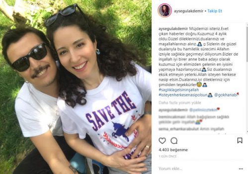 Ayşegül Akdemir – Gökhan Şahin çifti bebek sahibi olacaklarını sosyal medyadan duyurdu. Akdemir instagram hesabından paylaştığı fotoğrafla 4 aylık hamile olduğunu duyurdu. Çiftin geçtiğimiz haftalarda bebeğin cinsiyetini öğrendiği ama sürpriz olsun diye en yakınlarından bile bu bilgiyi gizlediği de gelen haberler arasında.