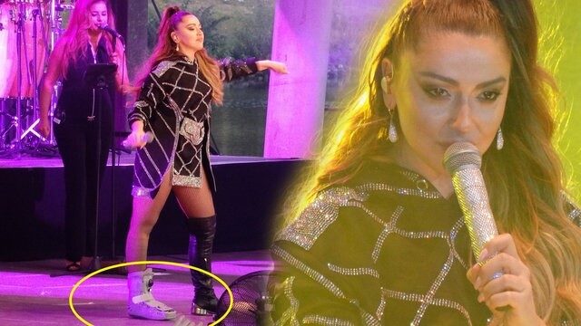 Sağ ayağına çizme, sol ayağına ise medikal bir aparat giyen Hadise, mini elbisesi ile de nefes kesti. Hadise, hayranlarına ayağındaki sorundan söz ederek “Gördüğünüz gibi ayağımda bir sakatlık var. Doktorum sahneye çıkmazsan iyi olur dedi, ama ben hayır ne gerekiyorsa verin ben çıkacağım dedim. Belki tam olarak performans gösteremiyorum, ama bir aradayız, beraberiz buda beni mutlu etti. Çok ağrılarım oldu, kaç gündür yatıyorum. Kendimi çok kötü hissettiğim anlar oldu, ama buraya geldiğimde organizatörler bana çok iyi baktı.” diye konuştu.