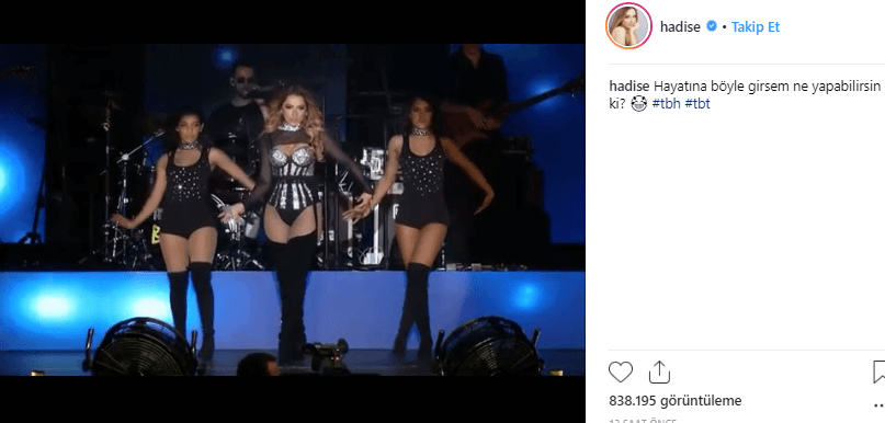 Zor günler geçiren Hadise, kendini toparlamaya çalışırken 2019 yılında paylaşımları ile dikkat çeker oldu. Şarkıcı Hadise son paylaşımı ile kafaları karıştırdı! Ünlü şarkıcı Hadise, dans videosunun altına ‘Hayatına böyle girsem ne yapabilirsin ki?’ notunu düştü. Ünlü şarkıcı Hadise’nin yoruma kapalı olarak paylaştığı video kısa sürede sosyal medyada büyük yankı buldu. İşte Hadise’nin paylaşımı…