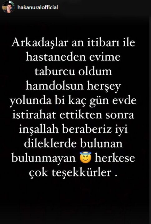 “Arkadaşlar an itibari ile hastaneden evime taburcu oldum. Hamd olsun her şey yolunda. Bir kaç gün evde istirahat ettikten sonra inşallah beraberiz. İyi dileklerde bulunan, bulunmayan herkese çok teşekkürler”