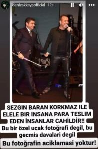 Haluk Levent ‘in Sezgin Baran Korkmaz ile bir karesini paylaşan Deniz Akkaya, “Sezgin Baran Korkmaz ile el ele bir insana para teslim eden insanlar cahildir! Bu bir özel uçak fotoğrafı değil, bu geçmiş davaları değil. Bu fotoğrafın açıklaması yoktur” şekline ifadelerini kullandı…
