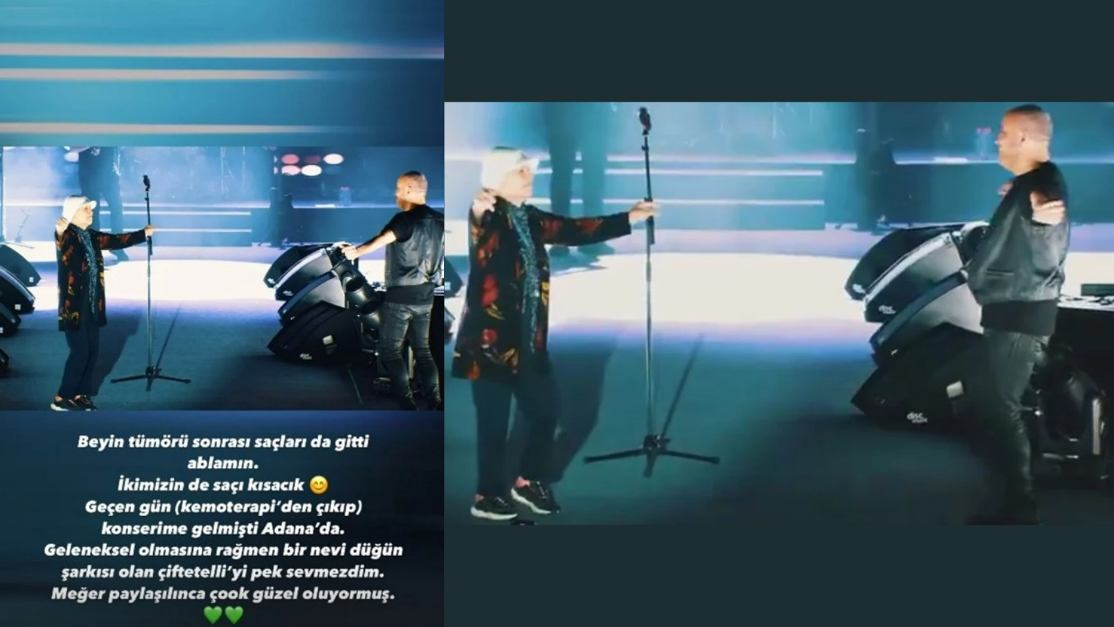 Konser sonrasında sosyal medya üzerinden de açıklamalarda bulunan Haluk Levent “Ablamın beyin tümörü sonrası saçları da gitti. İkimizin de saçları kısacık. Geçen gün kemoterapiden çıkıp konserime gelmişti Adana’da. Geleneksel olmasına rağmen bir nevi düğün şarkısı olan çiftetelliyi pek sevmezdim. Meğer paylaşılınca çok güzel oluyormuş” dedi. Bu paylaşım sonrasında binlerce kişi destek mesajı atarak ünlü şarkıcıya ve ablasına moral verdi.
