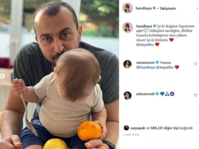 30 yaşındaki oyuncunun eşi Ali Atay, Hazal Kaya’nın katıldığı bir programda seslendirdiği şarkıyı yayınlayarak “Karım aşırı yetenekli” yorumunu yapmıştı. Kaya da Atay’ın paylaşımına “Ay bayılacağım mutluluktan” şeklinde karşılık vermişti. Konuyla ilgili konuşan Hazal Kaya, “Evet çok tatlıydı. Vallah mutlu oldum ne diyeyim. Bugün çocuğa o bakıyor, ben sete geldim” ifadelerini kullandı.