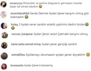 Bir süredir Cedi Osman ile Amerika ‘da yaşayan Ebru Şahin, son halini değiştirerek saçlarını kestirdi. Estetik operasyonu yaptırdığı iddia edilen Ebru Şahin, koyu renklerdeki göz makyajıyla tüm dikkatleri üzerine çekmeyi başardı. Ebru Şahin ‘in son imajı ise Türk sinemasının ünlü oyuncularından Aydan Şener ‘e benzetildi…