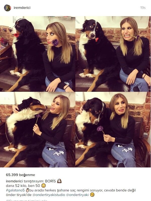 Sosyal medya hesabı üzerinden yaptığı son paylaşım ile ne kadar çok kilo kaybettiğini gözler önüne seren İrem Derici, köpeği Boris ile birlikte çekilmiş bir pozunu paylaştı ve Boris’in 52 kilo olduğunu, kendisinin de 50 kilo olduğunu söyledi. Ünlü şarkıcı, ne kadar zayıf olduğunun çok net bir şekilde göründüğü bu paylaşımından sonra hayranlarının daha da endişelenmesine neden oldu.