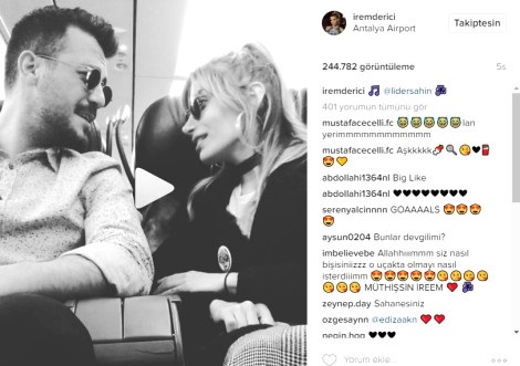 İrem Derici, usta sanatçı Selami Şahin’in oğlu Lider Şahin ile bir süredir dolu dizgin aşk yaşıyor. Aşk haberlerinin çıktığı ilk günlerde, Lider şahin’in annesinin bu aşka karşı çıktığı dedikoduları konuşuluyordu. Bu dedikodulara rağmen aşklarına devam eden çift, birlikte tatile çıktı. Tatil dönüşü uçakta birlikte şarkı seslendirdiler.