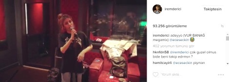İrem Derici, stüdyoya girip Ece Seçkin’in Adeyyo şarkısını seslendirdi. Ünlü şarkıcı şarkının bir bölümünde coştu ve “vur bana” diye bağırdı. Derici, bu eğlenceli anları sosyal medya hesabı üzerinden paylaştı. İşte detaylar…