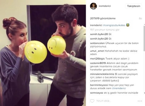 Derici, arkadaşı Cengiz Öztürk Ateş ile birlikte üzerinde gülen yüz bulunan balonları şişirirken çekilen kısa videoyu sosyal medya üzerinden arkadaşı Öztürk’ü de etiketleyerek takipçileri ile paylaştı. Sevgilisi Lider Şahin ile çıktığı tatilin ardından yaptığı bu paylaşımla “neşem yerinde” mesajı verdi.