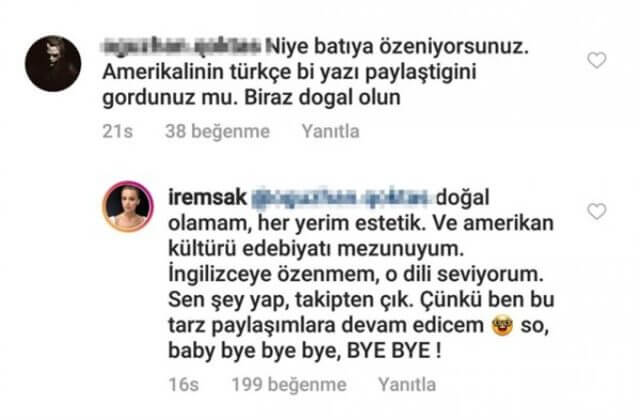 İrem Sak, bu kez de sosyal medyada bir takipçisiyle yaptığı yazışmayla gündeme geldi…
