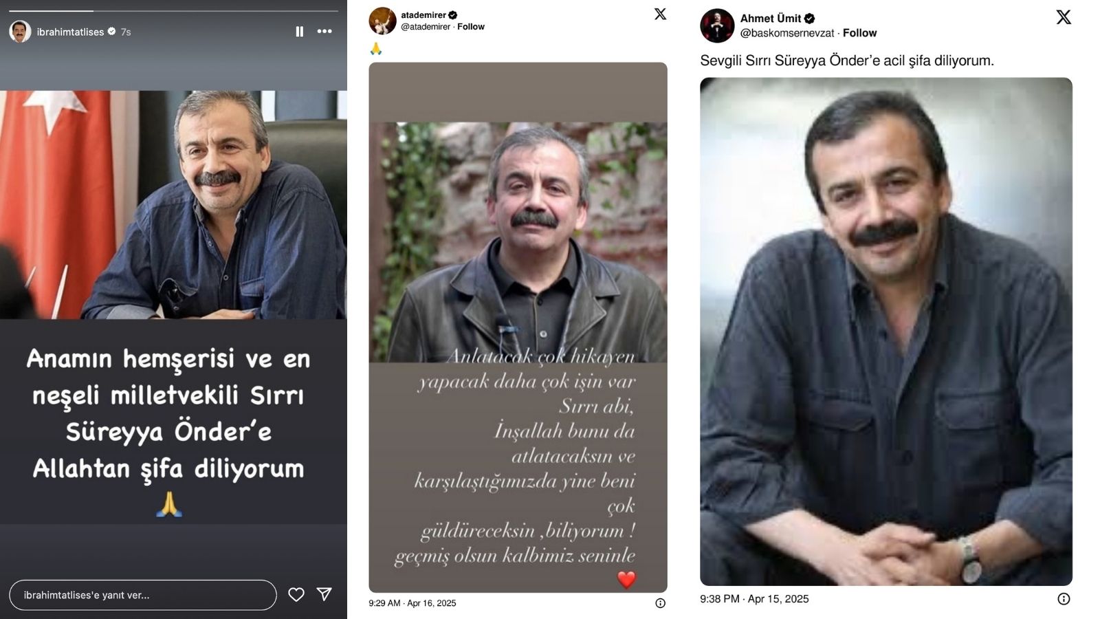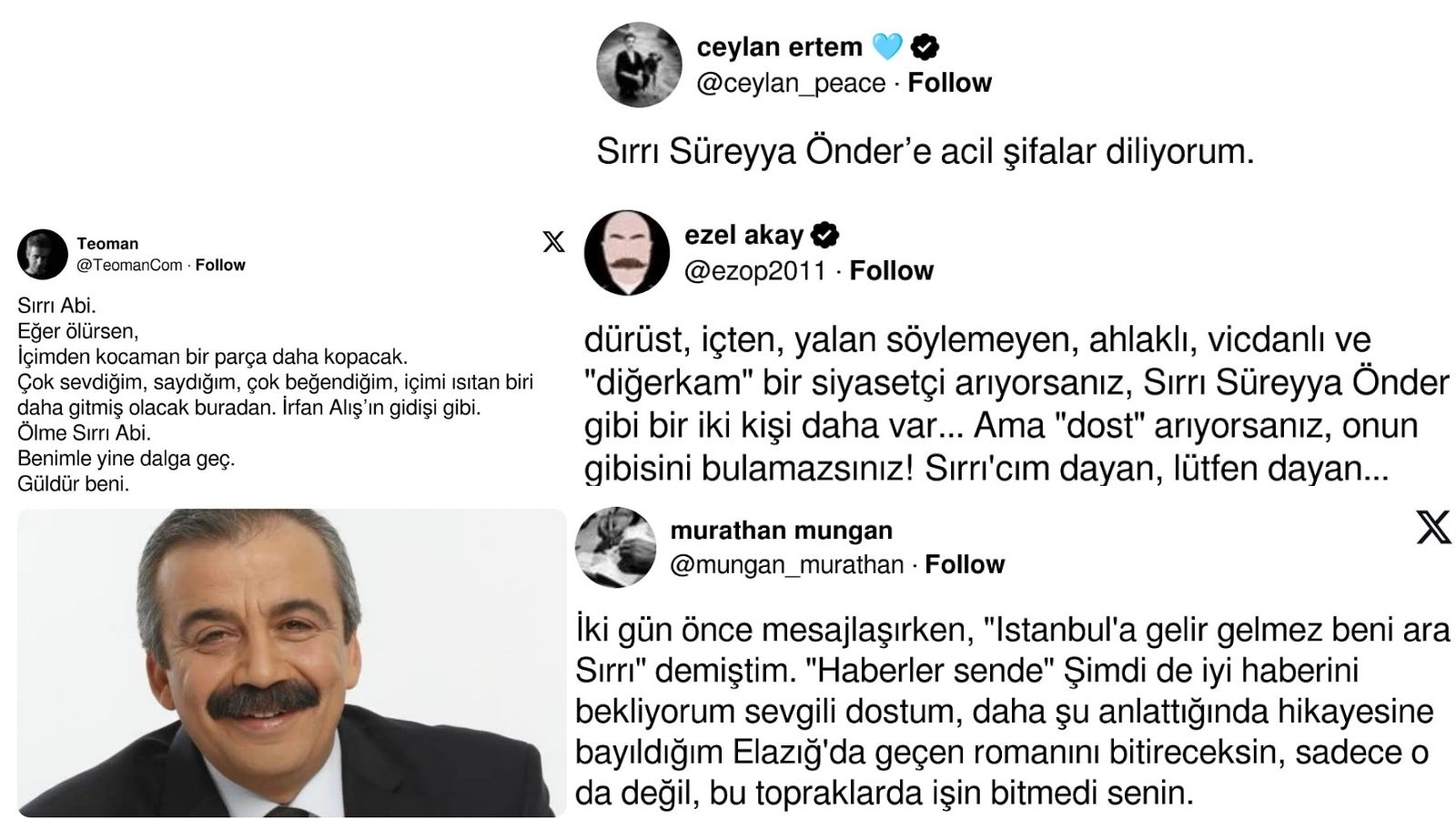 Sırrı Süreyya Önder’in yaşadığı süreç, sanat ve siyaset dünyasındaki dostlarını da derinden etkiledi. Pek çok tanınmış isim sosyal medya hesaplarından geçmiş olsun dileklerini iletti.
