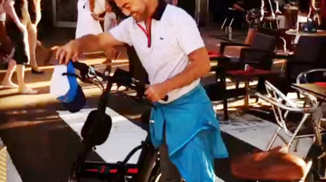 Elektrikli bisikleti ile spor yapan Serdar Ortaç, bir anda birbirinden güzel Latin bayanların etrafını sarması ile neye uğradığını şaşırdı.