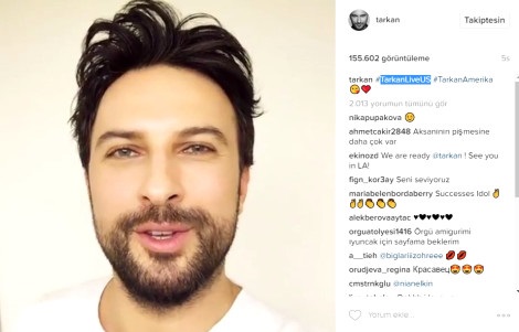 Amerikalı hayranları için özel bir repertuvar hazırlığında olan Tarkan, sosyal medya platformu Instagram hesabı üzerinden İngilizce bir video yayınlayarak Amerikalı hayranlarına selam yolladı. Tarkan, “Çok eğleneceğiz” mesajı verdi ve hayranlarını heyecanlandırdı.