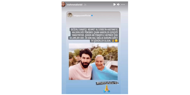 Çarkıfelek programı ile ekranlara dönmeye hazırlanan Mehmet Ali Erbil’in hastaneye kaldırıldığı iddia edilmişti. Tolga Yüce, ünlü şovmenin hastaneye kaldırıldığı haberlerinin gerçeği yansıtmadığını duyurdu. Sosyal medya hesabından Mehmet Ali Erbil ile çektiği pozunu paylaşan Yüce, “Değerli sanatçı Mehmet Ali Erbil’in hastaneye kaldırıldığı yönünde çıkan haberler gerçeği yansıtmıyor. Şükür an itibarıyla hepinize çok selamları var. En son hali sağlık durumu gayet iyi şükürler olsun” dedi.