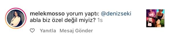 Melek Mosso’nun bu yorumu üzerine işlerin kızışacağını anlayan hatta belki de gerçekten yanlış anlaşılan Deniz Deki Mosso’ya şu şekilde yanıt vererek olayı tatlıya bağladı;