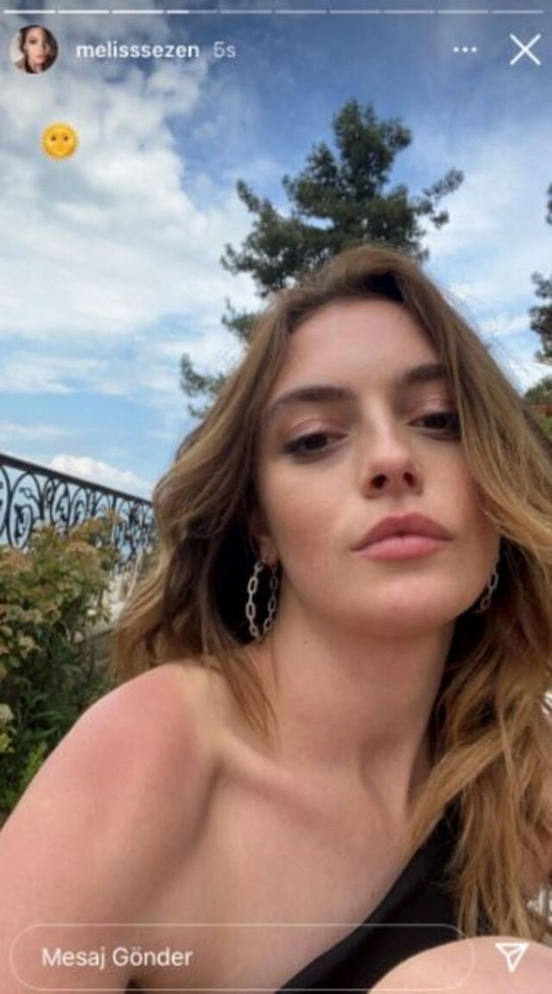 Beyaz tenli olan Melis Sezen’in güneşte biraz fazla kaldığı ve omuzunun ve tüm kolunun da kıpkırmızı olduğu fotoğrafında da görülüyor.