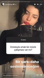 Şimdilerde evliliğin tadını çıkaran ünlü çiftten Merve Boluğur, Instagram hesabından takipçilerinin sorularını yanıtladı. Üç soru alacağını ifade eden ünlü isim, ‘Eşinizle ortak bir müzik çalışması var mı?’ diye merak eden takipçisine cevap verdi. 35 yaşındaki ünlü isim, “Bir şarkı daha seslendireceğim” dedi.