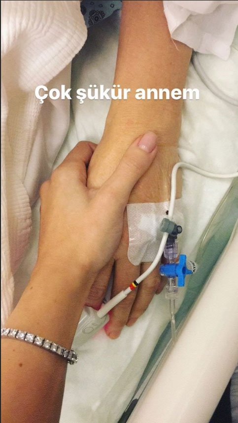 Şarkıcı Murat Dalkılıç ile ayrıldıktan sonra oyuncu Merve Boluğur’un, Instagram paylaşımlarıyla şaşırtıyordu. Geride bıraktığımız akşam rahatsızlanınca annesini hastaneye götüren oyuncu Merve Boluğur, annesi Nehra Hanımı hastaneye götüren oyuncu annesine serum takılıyken çekilmiş bir fotoğrafı paylaştı ve çektiği fotoğrafın üzerine İnstahikaye kısmından: ‘Çok şükür annem’ açıklamasını yazdı. Annesi Nehra Hanımın kolunun ve kolunda serum takılı olan bölgeyi çeken ve İnstahikayeden paylaşan aktif sosyal medya kullanıcısı Merve Boluğur’un paylaşımını ilk görenler endişeye kapıldı. Bu paylaşımla yakınlarını rahatlatan oyuncu Merve Boluğur, konudan haberdar olmayan takipçilerini de korkuttu. Başarılı ve güzel oyuncu Merve Boluğur ve annesi Nehra Hanıma çok sayıda sosyal medya kullanıcısı geçmiş olsun dileklerini iletti.