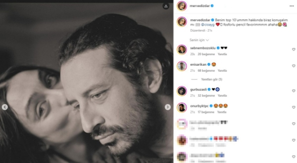 Merve Dizdar’ın sevgilisiyle yaptığı bu romantik paylaşım, ünlü oyuncunun özel hayatına dair hayranlarıyla paylaştığı nadir anlardan biri olarak kaydedildi. Takipçileri, Dizdar’ın mutlu ve sağlıklı bir ilişki içinde olduğunu görmekten büyük bir memnuniyet duydu.
