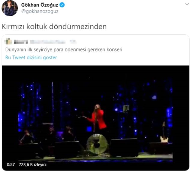 Çok kısa sürede Twitter’da gündeme yerleşen Demet Akalın’a bir yorum da meslektaşı Athena Gökhan’dan geldi. Geçtiğimiz dönemlerde O ses Türkiye’de jüri koltuğunda oturan Gökhan Özoğuz, Demet Akalın’ın performansı hakkında “Kırmızı koltuk döndürmezinden” dedi.