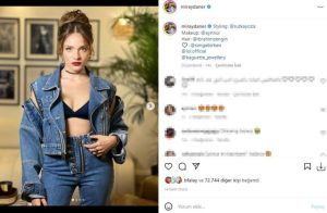 Denim model kot ceketli sadece sütyen takarak yaptığı kombinini saçlarını dağınık toplayarak tamamlayan Miray Daner, sosyal medya hesabından peş peşe pozlarını yayınladı. Miray Daner ‘in takipçileri ikiye bölünürken, pozlardaki güzelliği beğenilen oyuncunun kombini hiç beğenmedi. “Modacını değiştir” şeklinde yorum yağdıran kullanıcılar benzer yorumlarda bulundurlar…