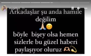 Instagram’da yaklaşık bir milyon takipçisi olan 38 yaşındaki güzel oyuncu, açıklamasında; “Arkadaşlar şuan hamile değilim. Böyle bir şey olsa hemen sizlerle bu güzel haberi paylaşıyor oluruz” ifadelerini kullandı.