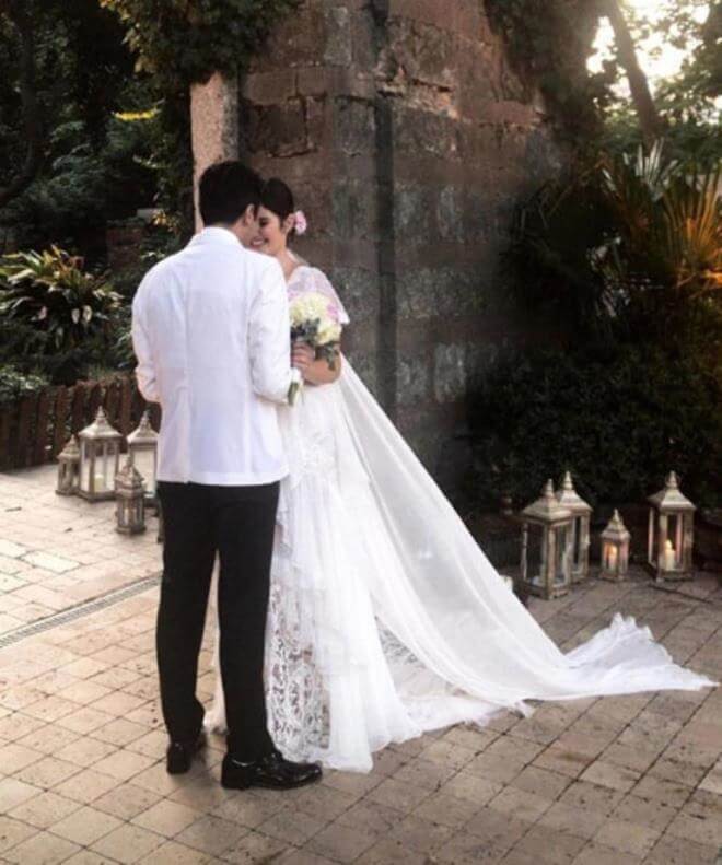 Gelin Müjgan Ferhan Şensoy, Tuvana Büyükçınar tasarımı bir gelinlik giymeyi tercih ederken, retro tarzına sahip gelinliğin altına kurdeleli ayakkabı giydi.