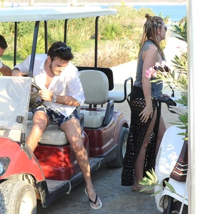Bir otelde görüntülenen Mustafa Ceceli ve Selin İmer çifti, deniz kenarındaki locada yemeklerini yedikten sonra, yürüyüş yapmak isteyen Mustafa Ceceli golf arabasıyla beachin kapısına gitti.