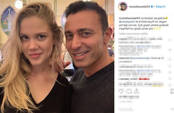 Mustafa Sandal, “Londra’dan sevgilerle. Serel Yereli ile birlikte keyifli bir akşam yemeği sonrası. Çok güzel yerlere gidecek maşallah bu güzel yürek çok”