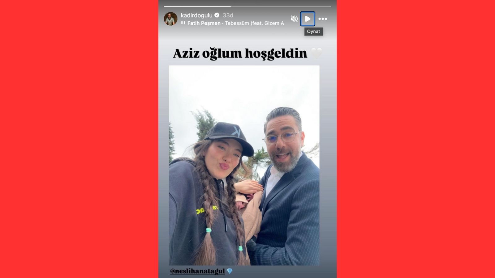 Çiftin, bebekleriyle birlikte paylaştığı ilk fotoğraf sosyal medyada kısa sürede büyük yankı uyandırdı. Fotoğrafta Kadir Doğulu’nun Aziz’i nazikçe kollarında tuttuğu, Neslihan Atagül’ün ise sevgi dolu bakışlarla bebeğine baktığı görüldü. Fotoğraf, kısa sürede yüz binlerce beğeni ve yorum aldı.
