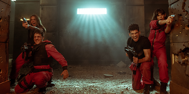 Final sezonundan paylaşılan ilk kareler, İspanya Merkez Bankası’nın hem içindeki hem de dışındaki kaosu gözler önüne seriyor. Sierra’nın saklanma yerini bulmasıyla hazırlıksız yakalanan Profesör, bankanın içinde güvende olan Lizbon… Savaş başlar. Daha fazla silah ve bir planı olmamasının çaresizliğiyle yüzleşen Çete, hayatta kalmak için bütün her şeyini ortaya koymak zorundadır.