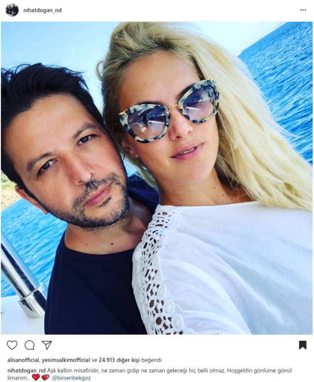 Sosyal medya hesabından Bekgöz ile çekilmiş bir fotoğrafını yayınlayan Nihat Doğan, duygu yüklü bir mesaj yazdı. Nihat Doğan, “Aşk kalbin misafiridir ne zaman gidip ne zaman geleceği hiç belli olmaz. Hoşgeldin gönlüme gönül limanım..” notuyla aşkını resmen itiraf etmiş oldu. Nihat Doğan’ın bu paylaşımı kısa sürede binlerce beğeni aldı.