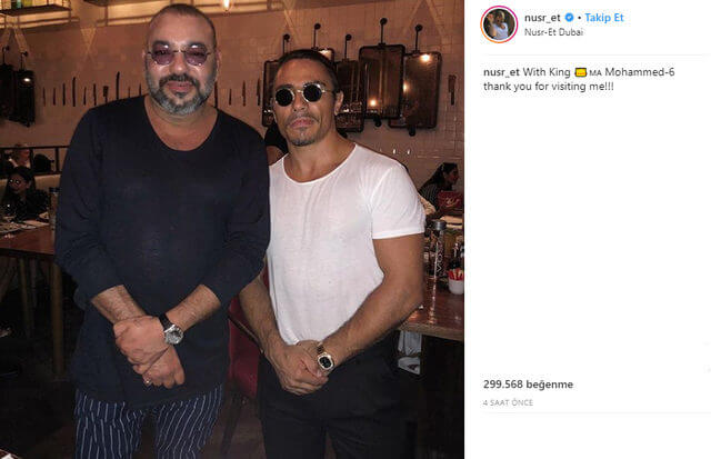 Ünlü konukları restoranında ağırlayarak gündeme gelen sosyete kasabı Nusret Gökçe, bunlara bir yenisini daha ekledi. Fas Kralı 6. Muhammed’i restoranında ağırlayan Etçi Nusret, çektirdiği fotoğrafı da Instagram hesabından paylaştı. Nusret’in gönderisi ile kısa sürede 300 binden fazla beğeni almayı başardı…
