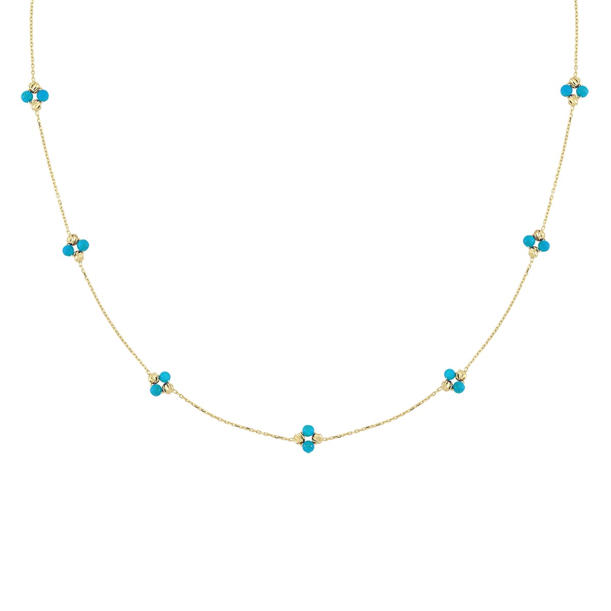 Altın firuze renk taşlı zincir kolye