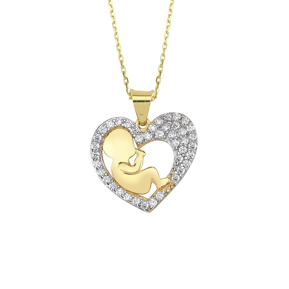 Kalp içinde bebek altın kolye