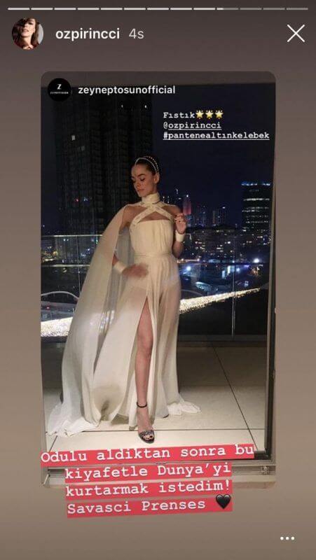 Altın Kelebek’ten 3 ödülle ayrılan dizinin Bahar’ı Özge Özpirinçci, ödülünü alırken, törene birlikte geldiği sevgilisi Burak Yamantürk’e de kendisine verdiği cesaretten dolayı teşekkür etti. İki çocuklu bir annenin yaşadığı zor hayatı anlatan Bahar karakterinin güçlü duruşuna işaret eden Özge Özpirinçci, konuşmasında ise, “Öncelikle beni hayal kurmaya, her zaman öncelik olarak görmemi sağlayarak büyüten aileme çok teşekkür ederim. Çünkü ben bir hayal kurdum. Oyuncu olmak istiyordum. Oldum. 2. Altın Kelebek’i mi alıyorum. Bu benim meslekteki 10. yılım, 10 yıldır çalıştığım bütün ekiplere çok teşekkür ederim ama benim için en değerlisi Hümeyra’dır. Ona özel bir teşekkürü her oynadığım karakterde bir borç biliyorum. Sette gerçekten zor demek istemiyorum ama severek yaptığınız zaman başarabildiğiniz şartlar altında çalışıyoruz. Beni her sabah sete yollayıp, her akşam evde mutlu bir şekilde karşılayan sevgilim Burak’a çok özel bir teşekkür etmek istiyorum. Çünkü beni o kadar çok destekliyor ve güçlü bir kadın olmamama o kadar yardımcı oluyor ki onun sayesinde cesaretim her zaman yerinde oluyor. Ona çok teşekkür ediyorum.