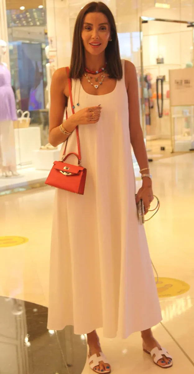 Beyaz elbisesi ve şıklığıyla tüm bakışları üzerinde toplayan, basın mensuplarının fotoğraf isteğini geri çevirmeyen 39 yaşındaki manken, alışveriş turu sonrası meydan katında yakın arkadaşlarıyla bir araya geldi.