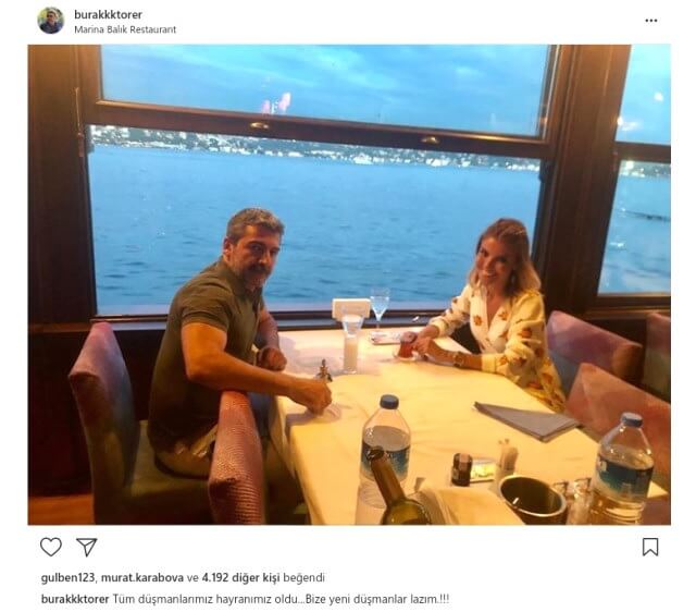Burak Törer’in Gülben Ergen ile paylaştığı fotoğrafın altına eklediği not oldukça dikkat çekiciydi. Törer, paylaşımına “Tüm düşmanlarımız hayranımız oldu… Bize yeni düşmanlar lazım.” notunu ekledi. Burak Törer’in bu not ile birilerine birilerine mesaj gönderdiği düşünüldü. Ancak, kime olduğu henüz bilinmiyor.