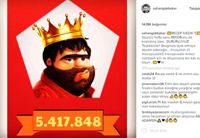 Sevincini sosyal medya üzerinden sevenleri ile paylaşan Şahan Gökbakar, “RECEP İVEDİK 5 Üçüncü hafta sonu REKORunu da kırdırdınız bize… GURURLUYUZ! Teşekkürler! Sevginize layık olmaya devam edeceğiz. Not: bizim için ne diliyorsanız bin katı sizin olsun.” mesajını yayınladı.