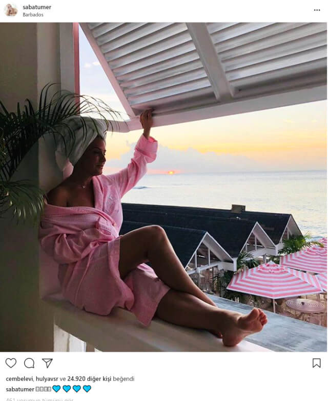 Sunduğu gece programları ile gündemde olan ünlü sunucu, programlara konuk olarak katıldığı zaman ise söylediği sözlerle gündemde olmayı başaran bir kadın. Şen kahkahalarıyla da izleyicilerini hayran bırakan, başarılı projelere el atan bir sunucu bayan kahkaha olarak bilinen sunucu ne yapsa olay oluyor. Güzel sonucu ekranlarda olmaya devam ediyor ve yaptıkları ile en çok konuşulan isimler arasında yer alıyor. Şu sıralar Barbados’a tatile giden ünlü sunucu Saba Tümer tatil fotoğrafları ile dikkat çekiyor. Saba Tümer, otelin balkonundan pembe bornozlu pozuyla takipçilerinin dikkatini çekti. Ünlü sunucunun fotoğrafına kısa sürede binlerce beğeni ve yorum geldi. İşte ünlü sunucu Saba Tümer’in çok konuşulacak o paylaşımı…