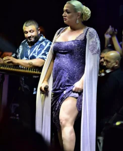 Programının ortalarına doğru konuklarıyla sahneden sohbet eden Ayta Sözeri, “Arkadaşlar farkındaysanız ben sahneye hep uzun elbiseyle çıkıyorum ama bacaksa buyrun bende de var” diyerek elbisesinin eteklerinden tutup yukarı kaldırdı ve dinleyicisinden alkış aldı.