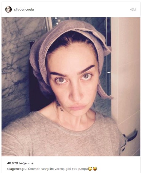 Sıla, Instagram hesabı üzerinden saçında havlusu ve tamamen sıfır makyajlı hali ile çekilmiş olduğu bir fotoğrafını yayınladı. 14 Şubat Sevgililer günü paylaşımında makyajsız fotoğrafını paylaşmayı tercih eden Sıla, paylaşımına “yanımda sevgilim varmış gibi çek pampa” notunu da ekledi.