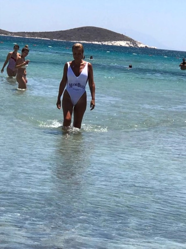 İşte Seda Akgül’ün beyaz mayosu ile sahildeki görüntüsü…