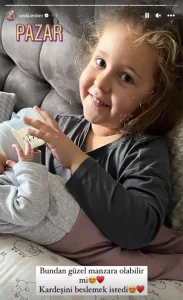 Sık sık çocuklarıyla paylaşım yapan Seda Erdim, iki kız kardeşin pozlarına bir yenisini daha ekledi. Bu sabah dört yaşındaki Ses’in kardeşini doyurduğu anı fotoğraflayan çiçeği burnunda anne, paylaşımına; “Bundan güzel manzara olabilir mi? Kardeşini beslemek istedi” notunu düştü. İki çocuk annesi Erdim’in paylaşımı büyük ilgi gördü.