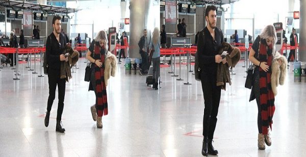 Ceceli, elini eşinin omzuna atarak poz verirken, bir süredir hamile olduğu iddia edilen İmer’in ise eliyle karının tutarak objektiflere poz vermesi dikkatlerden kaçmadı. Pasaport sırasına geçen ikiliden İmer’in, Metallica baskılı tişörtü dikkati çekerken henüz karnında herhangi bir büyüme olamadığı da görüldü.