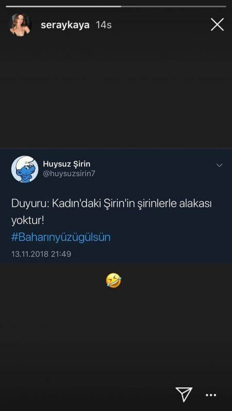 Kadın dizisini izleyip de Şirin’den nefret etmeyen yoktur herhalde! Dizinin ‘kötü kadını’ her bölümde, ekran başında diziyi izleyenleri adeta çıldırtıyor! Bahar’a yaptıklarıyla sinirleri iyice alt üst eden Şirin, bu haftaki bölümde Pırıl’ın evlerine gelip babası ve kocasıyla birlikte olduğunu söyleyince, anne ve babasının karşısında şok geçirdi! “Ruh hastası, psikopat” gibi terimler ile sosyal medyada çok konuşulan Şirin, başarılı oyunculuğu ile dikkat çekmeyi başarıyor. Yüzü şekilden şekle girerken aslında performansıyla da büyük bir başarı hikayesi ortaya koyuyor. Başarılı oyuncu Seray Kaya, son olarak sosyal medya hesabından rolü ile paylaşım yaparak, dalgasını geçti. İşte güzel oyuncu Seray Kaya’nın o paylaşım…