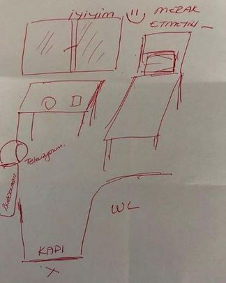 Seren Serengil, dün sabah İstanbul Adalet Sarayı’na gelerek yapılan işlemlerin tamamlanmasından sonra 3 günlük hapis için Bakırköy Kadın Kapalı Cezaevi’ne gönderilmişti. Avukatı aracılığıyla sevenlerine ‘iyiyim’ mesajı gönderen Serengil dün kaldığı koğuşun krokisini çizdi.